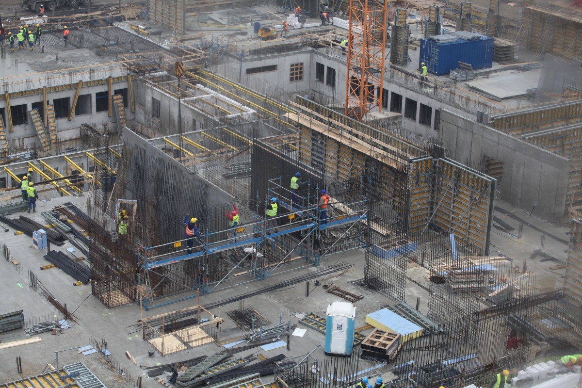 I etap objął wyprzedzające badania archeologiczne wraz z zabezpieczeniem wykopu  poprzez budowę płyty fundamentowej, a jego wykonanie przypadło na okres wrzesień 2010 - czerwiec 2011 i wykonała je firma  PORR (POLSKA) S.A.  z siedzibą w Warszawie.